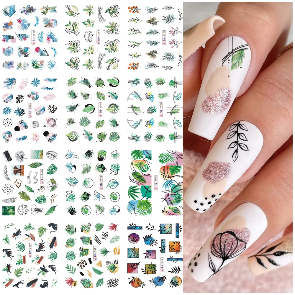 12 styles Spring Leaf Flower nail sticker decals nail art .