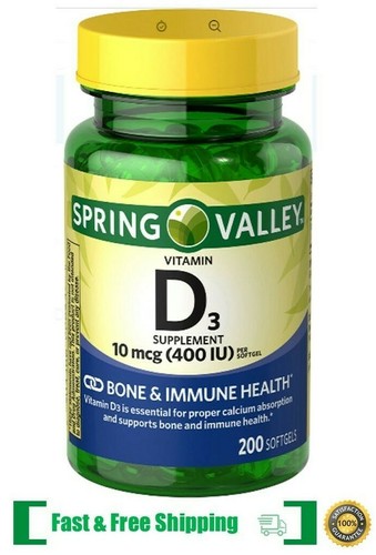 Spring Valley Vitamin D3 10 mcg (400 IU) 200 Softgels EXP 2023 .